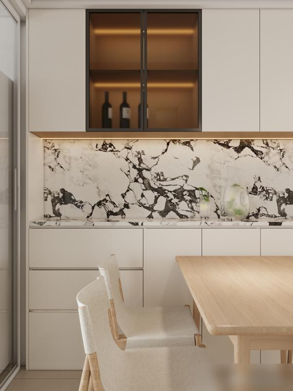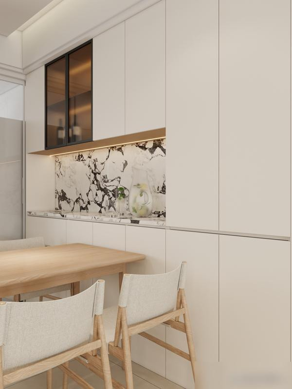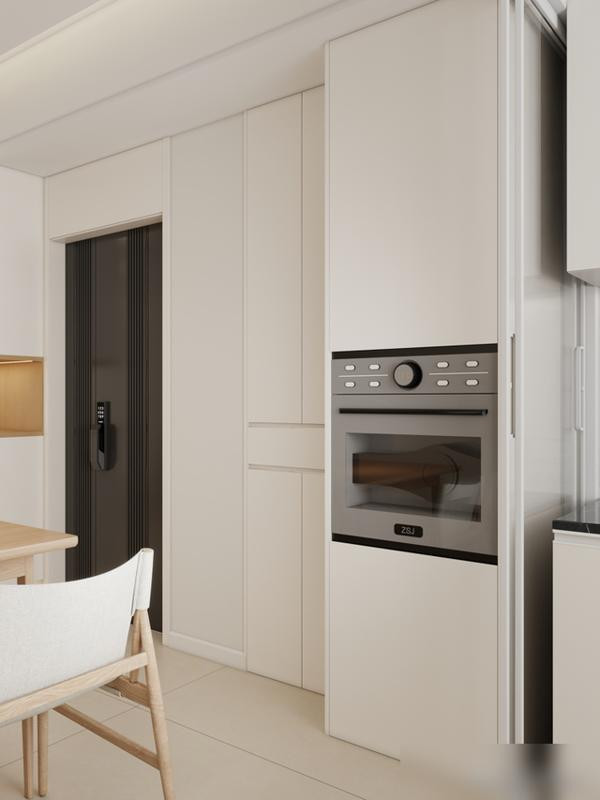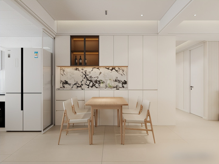 冰箱别硬塞厨房,和餐边柜连成一片,空间整齐还腾出灶台位置。