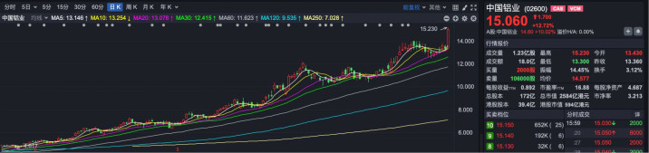 有色金属板块爆发,中国铝业(HK02600)涨超12%。